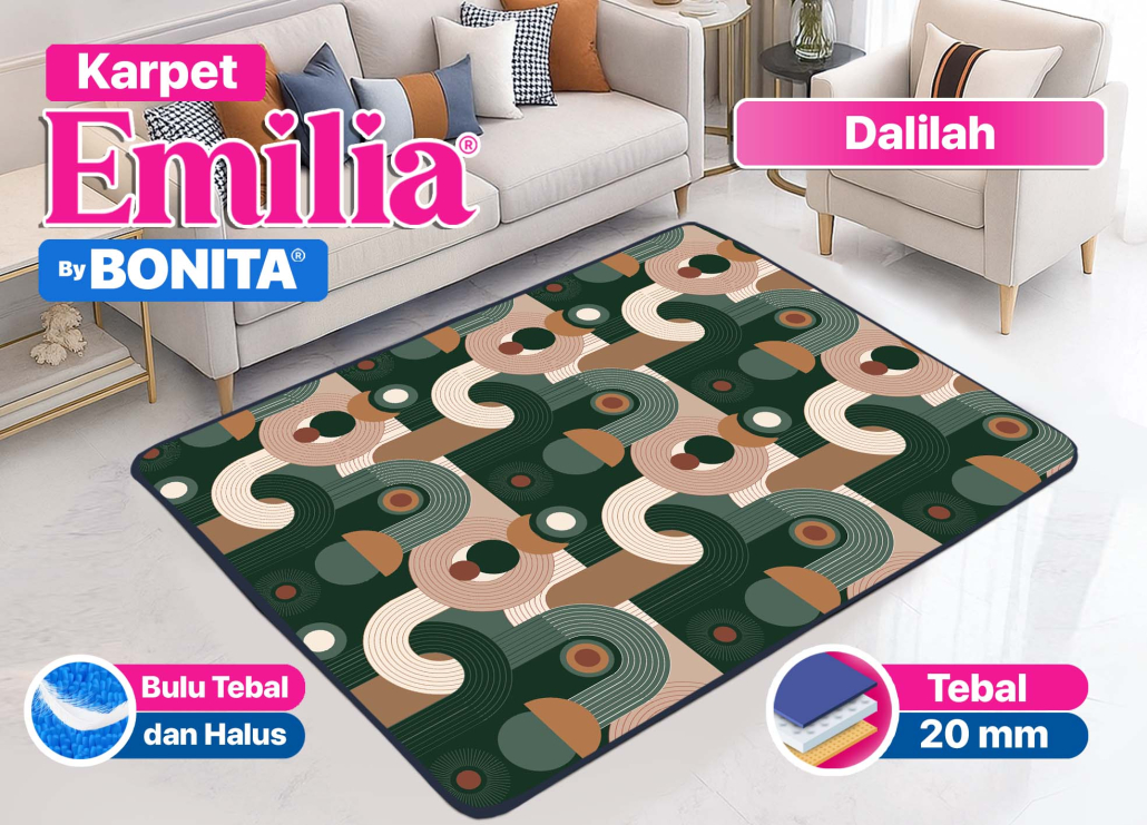 Dengan kombinasi bahan lembut dan fitur anti slip, Karpet Emilia menjadi pilihan tepat bagi Anda yang mengutamakan kenyamanan sekaligus keamanan.