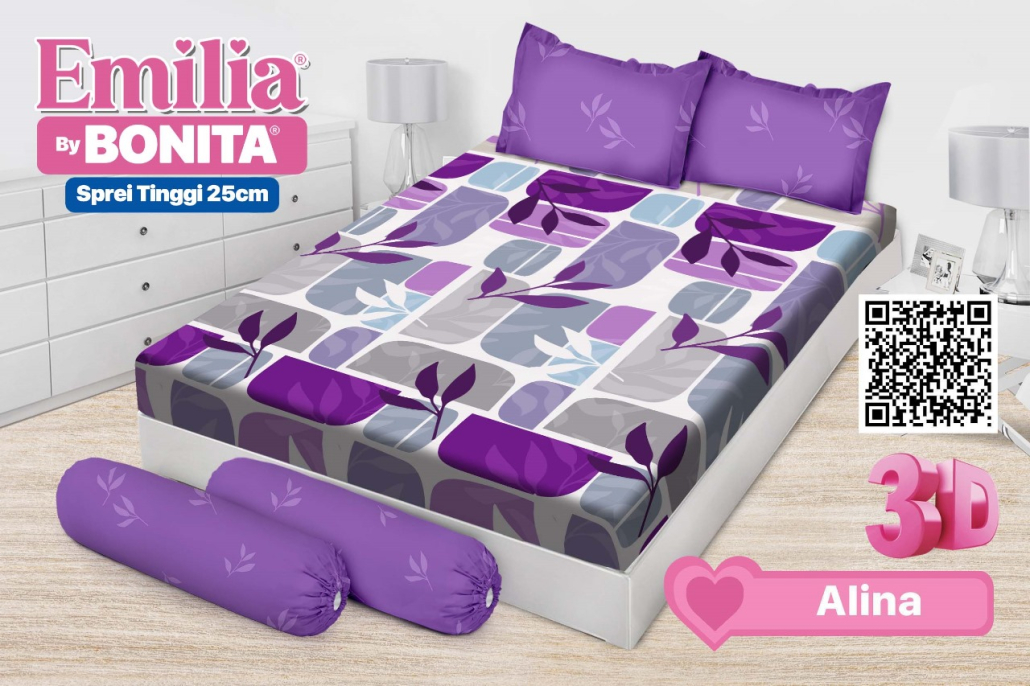 Berikut keterangan dan spesifikasi dari Emilia Sprei by Bonita Fitted Size 180×200 & 160×200 / Tinggi 25 cm FREE 2 SARBAN + 2 SARGUL :