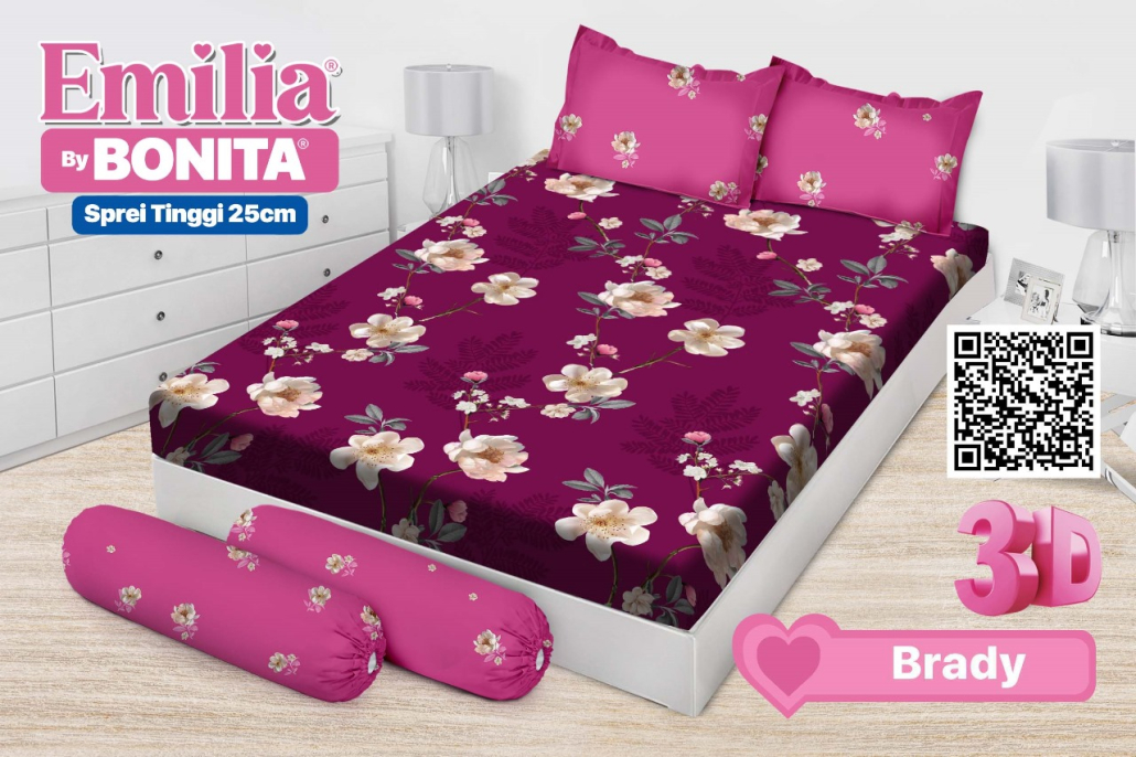 Berikut keterangan dan spesifikasi dari Emilia Sprei by Bonita Fitted Size 180×200 & 160×200 / Tinggi 25 cm FREE 2 SARBAN + 2 SARGUL :