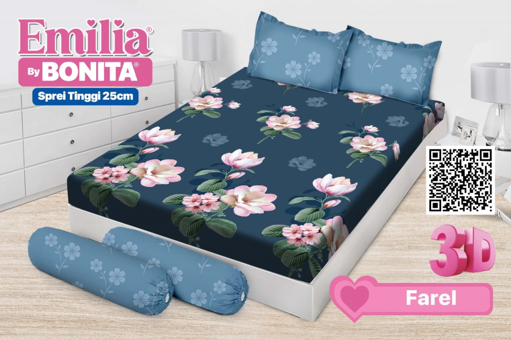 Berikut keterangan dan spesifikasi dari Emilia Sprei by Bonita Fitted Size 180×200 & 160×200 / Tinggi 25 cm FREE 2 SARBAN + 2 SARGUL :