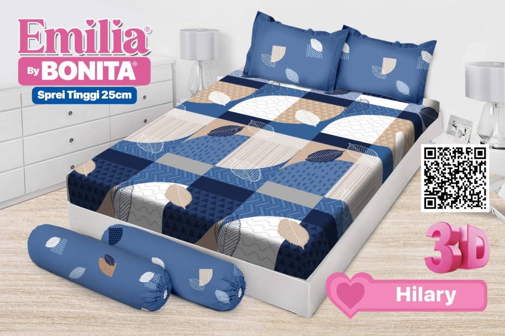 Berikut keterangan dan spesifikasi dari Emilia Sprei by Bonita Fitted Size 180×200 & 160×200 / Tinggi 25 cm FREE 2 SARBAN + 2 SARGUL :