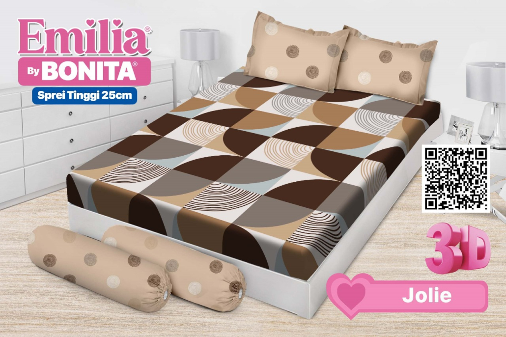 Berikut keterangan dan spesifikasi dari Emilia Sprei by Bonita Fitted Size 180×200 & 160×200 / Tinggi 25 cm FREE 2 SARBAN + 2 SARGUL :