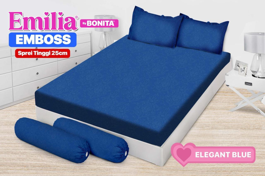 Sprei Emilia dari Bonita memiliki karakter emboss premium yang memberikan kesan berkelas tanpa motif berlebihan. Polos tetapi tetap memiliki tekstur cantik, membuat kamar terlihat lebih rapi, modern, dan nyaman dipandang.