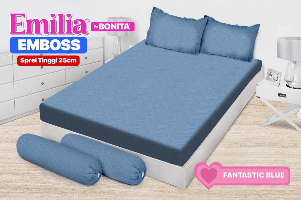 Sprei Emilia dari Bonita memiliki karakter emboss premium yang memberikan kesan berkelas tanpa motif berlebihan. Polos tetapi tetap memiliki tekstur cantik, membuat kamar terlihat lebih rapi, modern, dan nyaman dipandang.