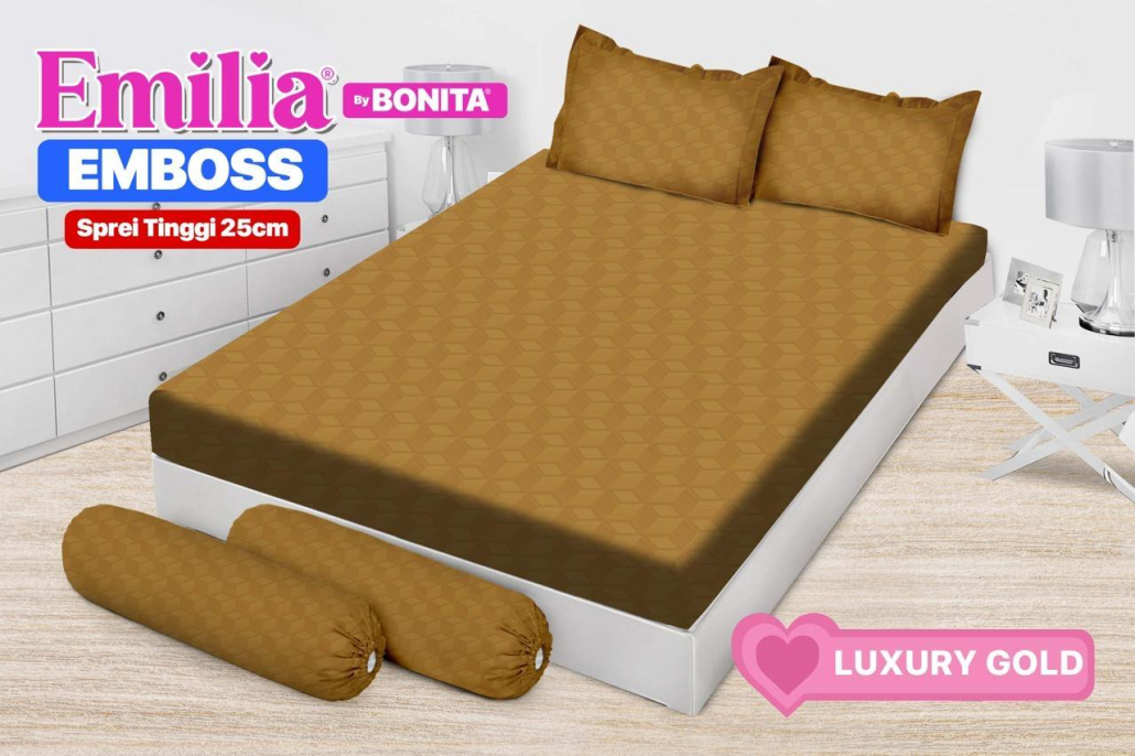 Sprei Emilia dari Bonita memiliki karakter emboss premium yang memberikan kesan berkelas tanpa motif berlebihan. Polos tetapi tetap memiliki tekstur cantik, membuat kamar terlihat lebih rapi, modern, dan nyaman dipandang.