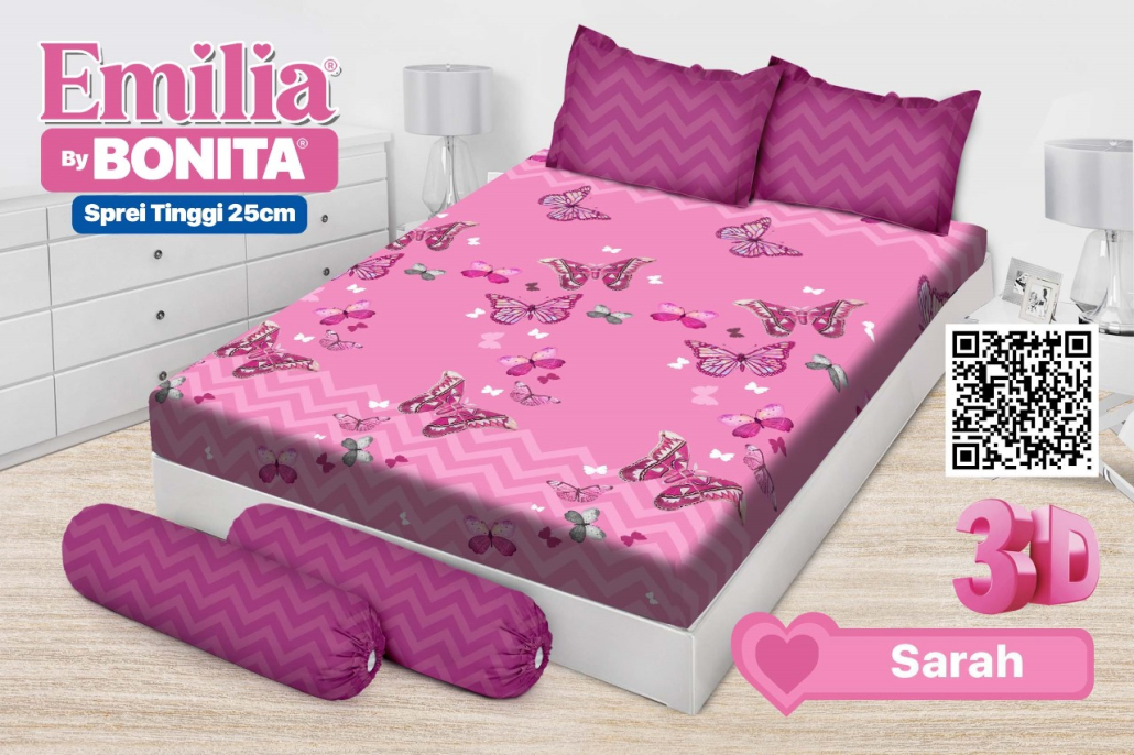 Berikut keterangan dan spesifikasi dari Emilia Sprei by Bonita Fitted Size 180×200 & 160×200 / Tinggi 25 cm FREE 2 SARBAN + 2 SARGUL :
